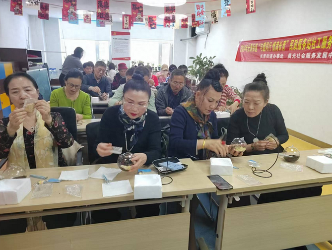 活动当天,社区活动室内洋溢着欢快的氛围。一把铲子、一盏容器、一株多肉,简单的工具与材料,在大家的巧手中即将幻化为春天的使者。参与者们早早地来到活动现场,每个人都满怀期待,准备亲手打造属于自己的多肉盆栽。