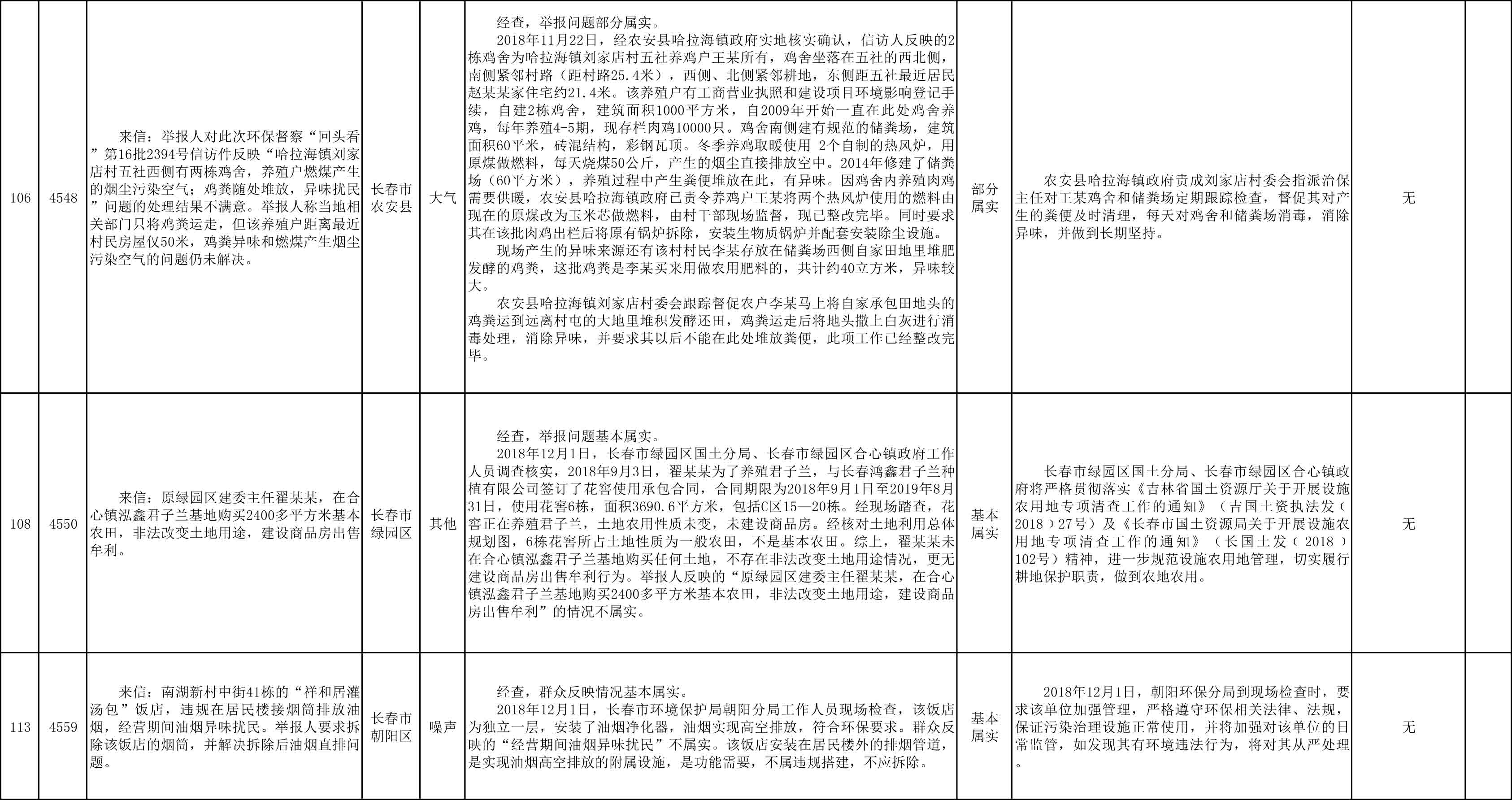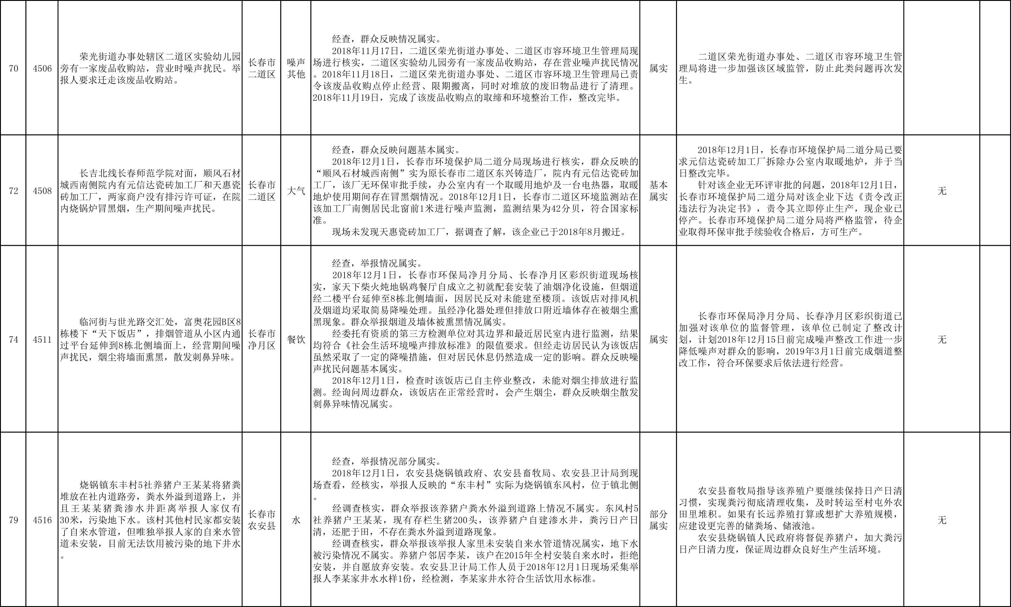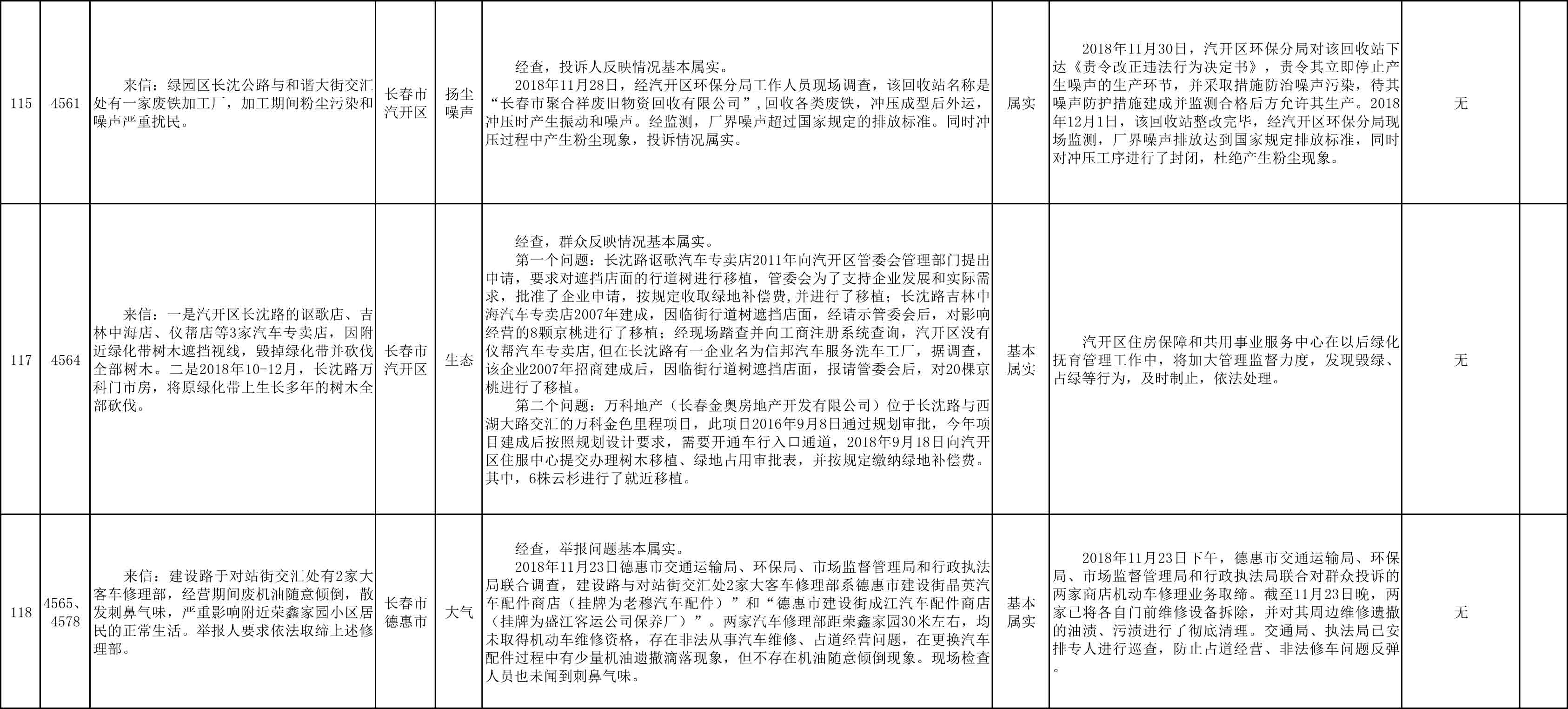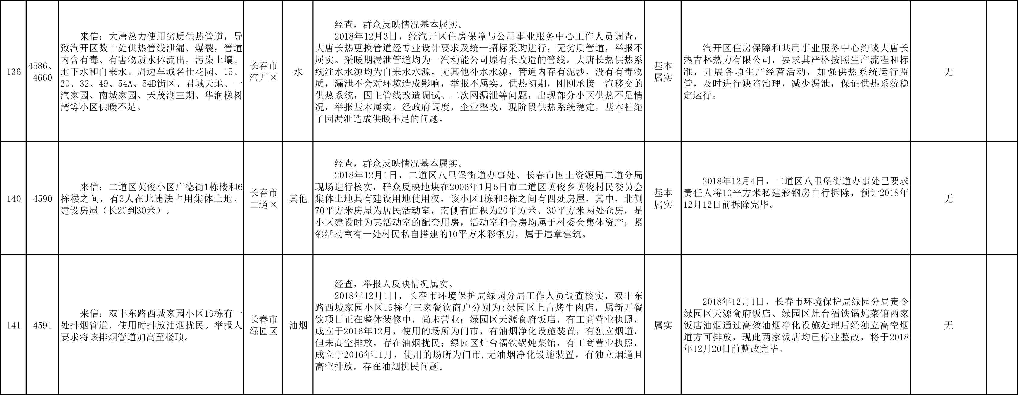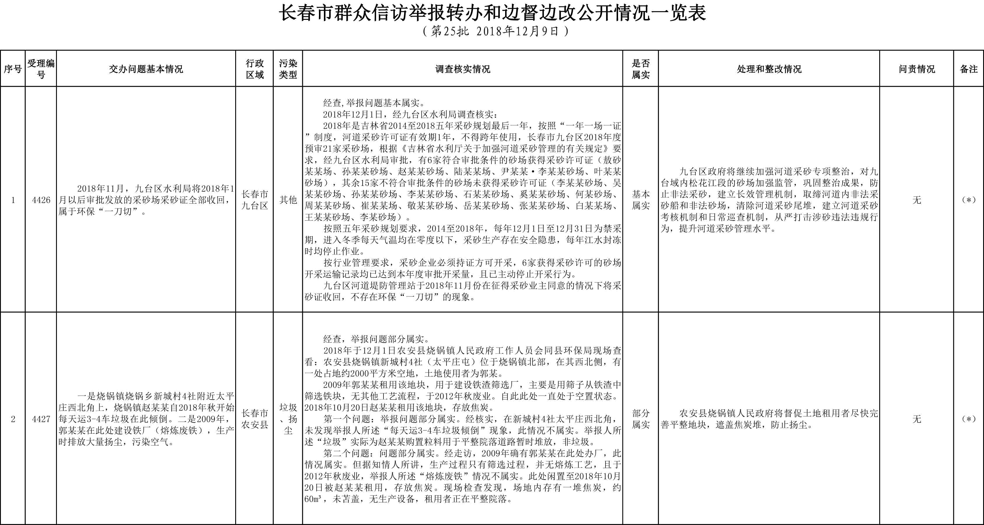 长春市群众信访举报转办和边督边改公开情况一览表(第25批 2018年12月9日)