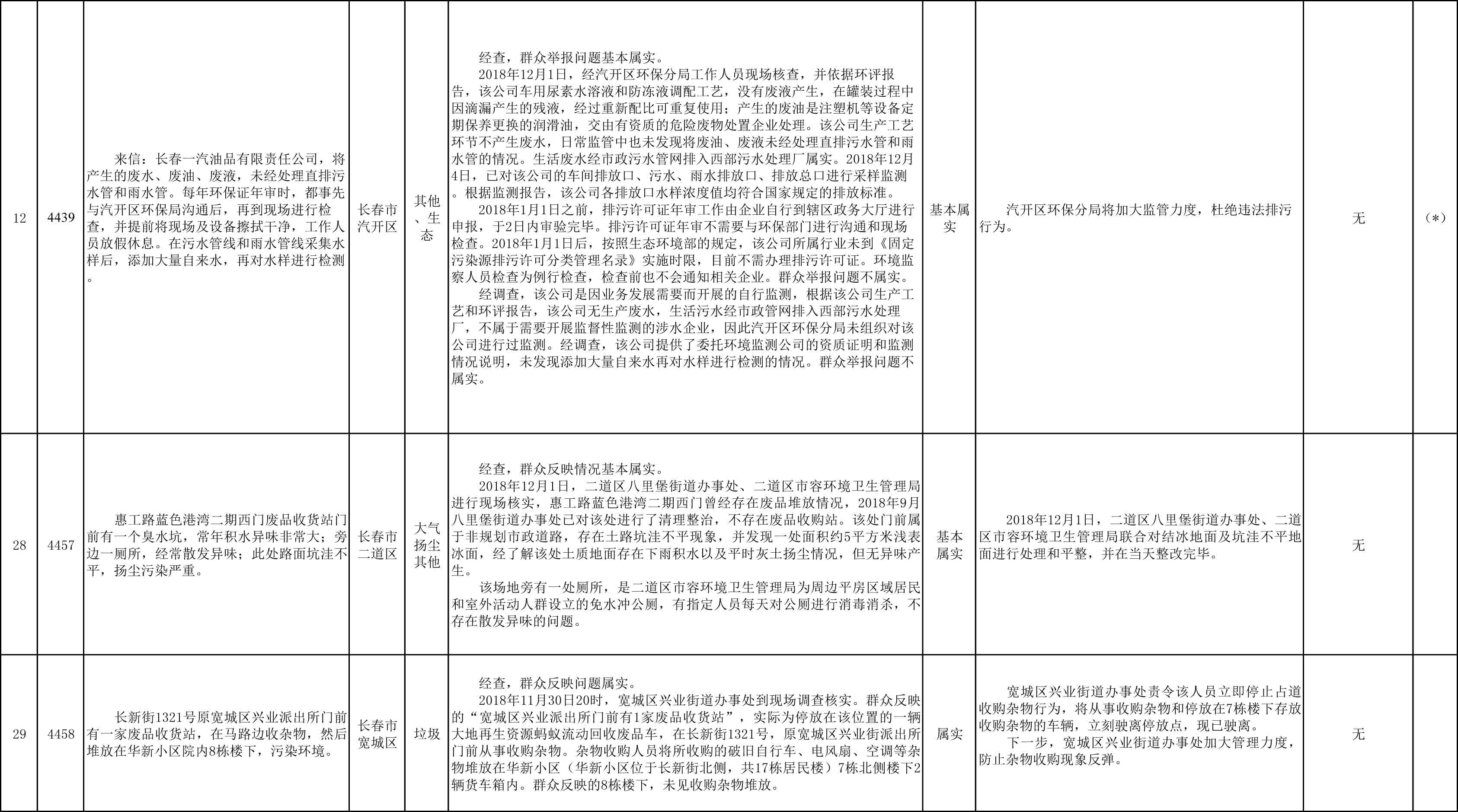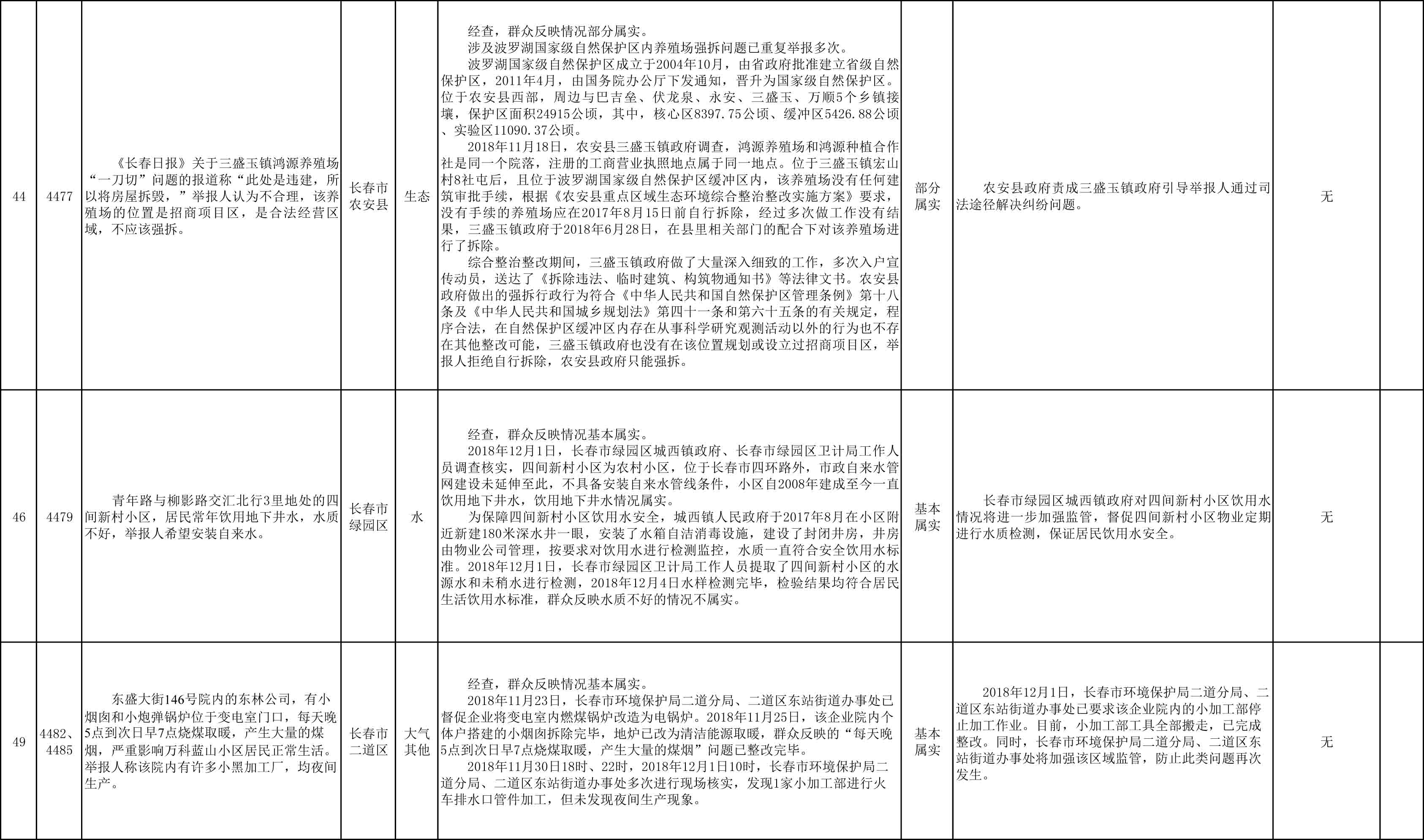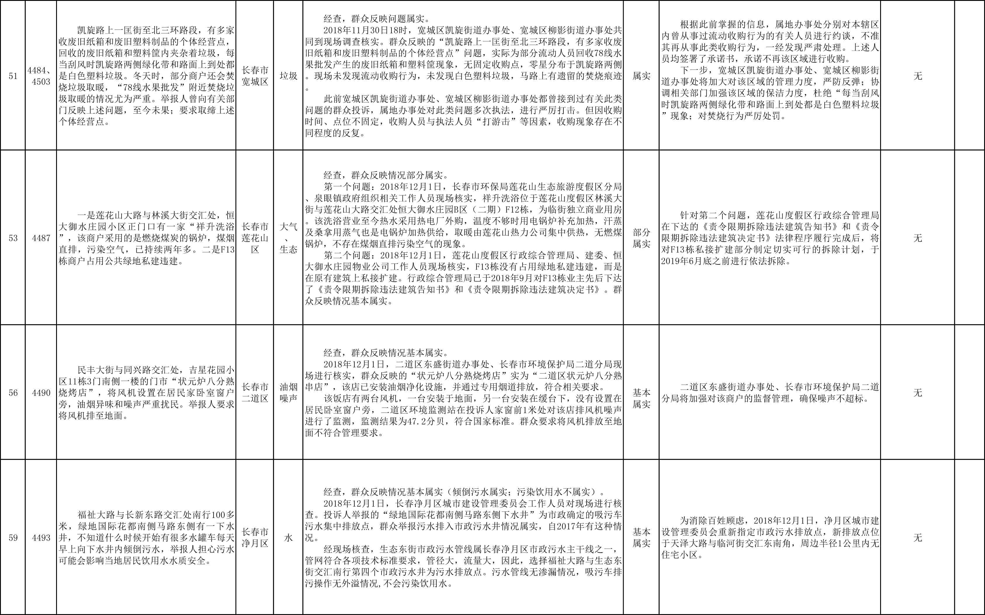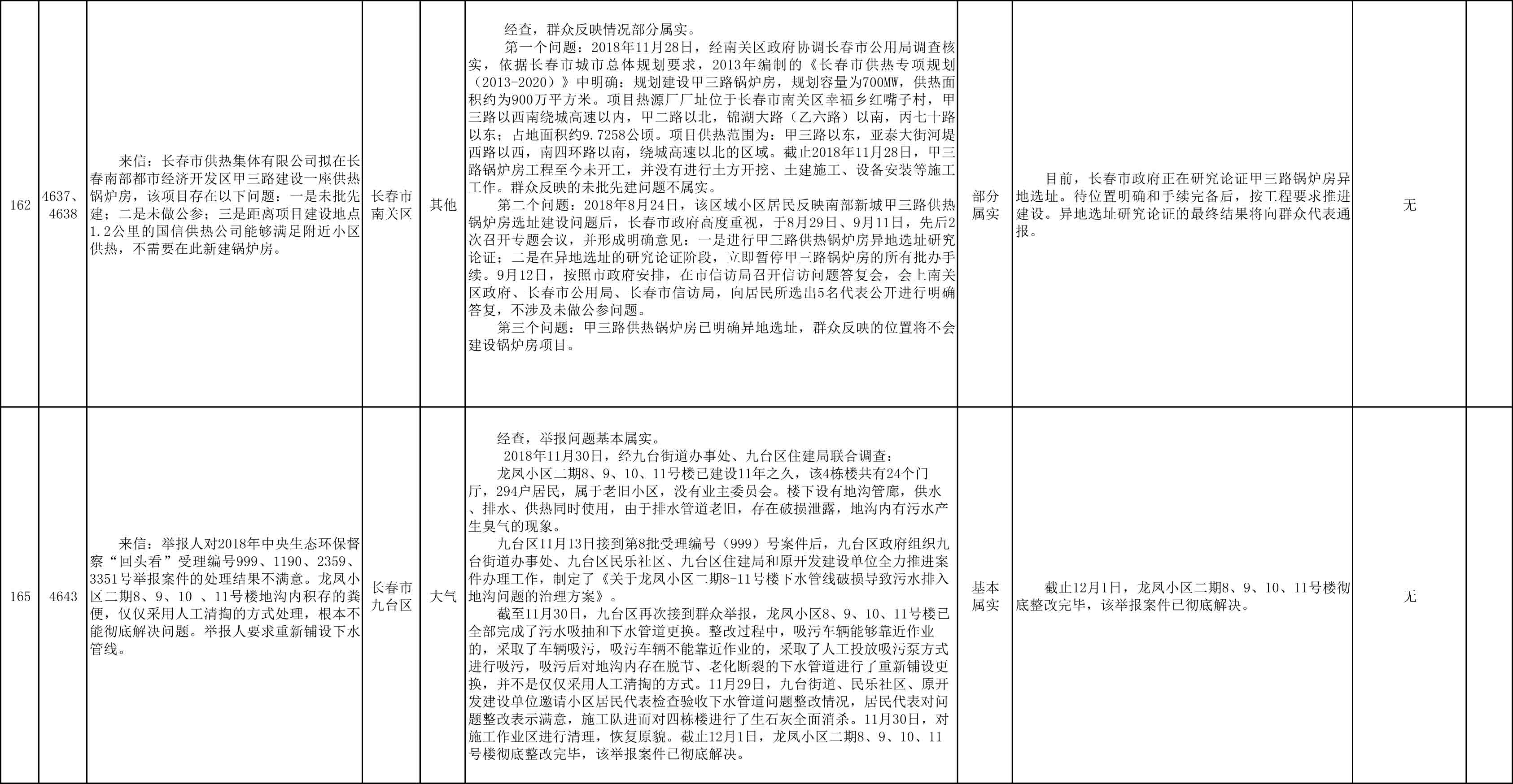 长春市群众信访举报转办和边督边改公开情况一览表(第25批 2018年12月9日)