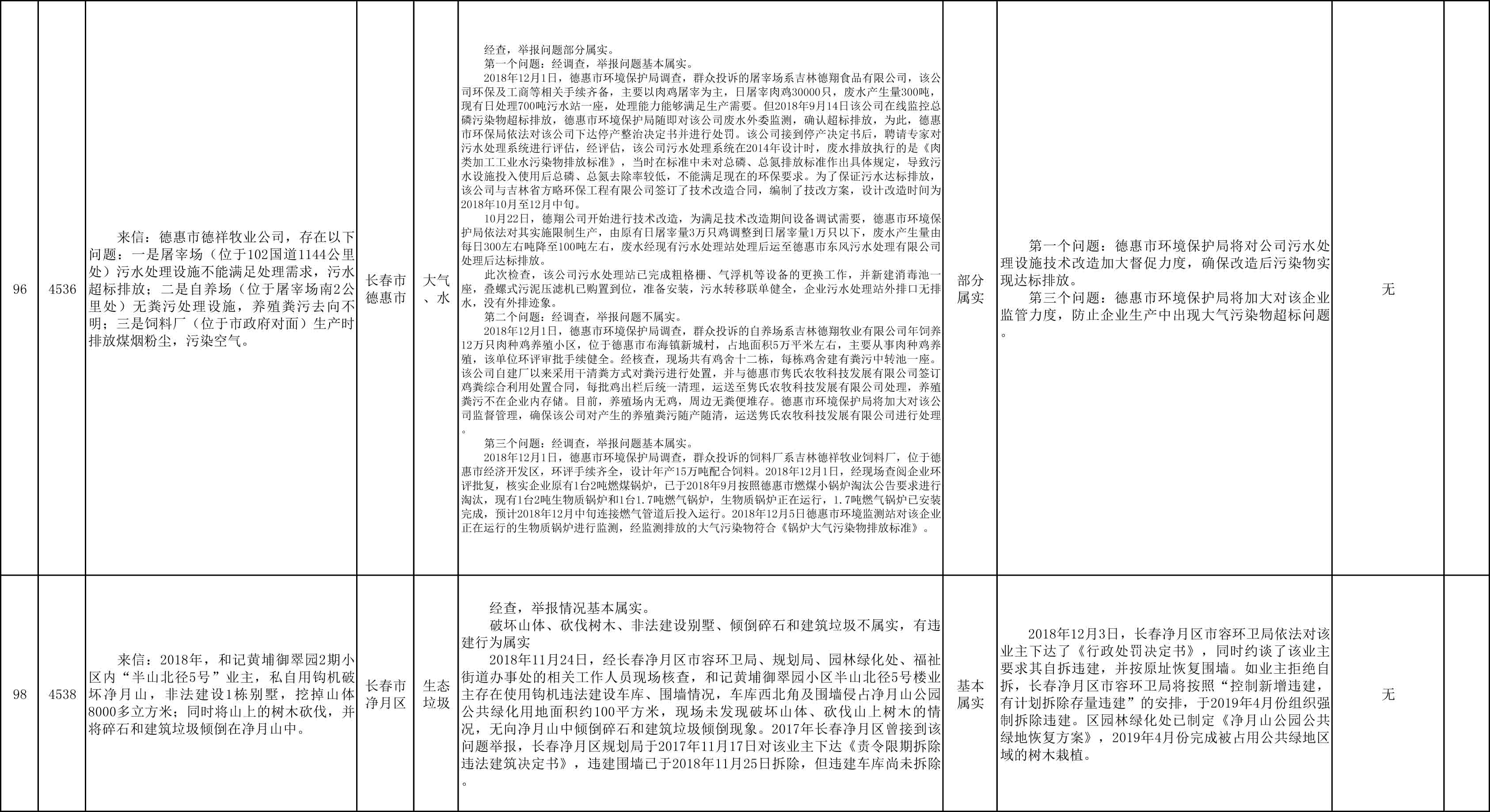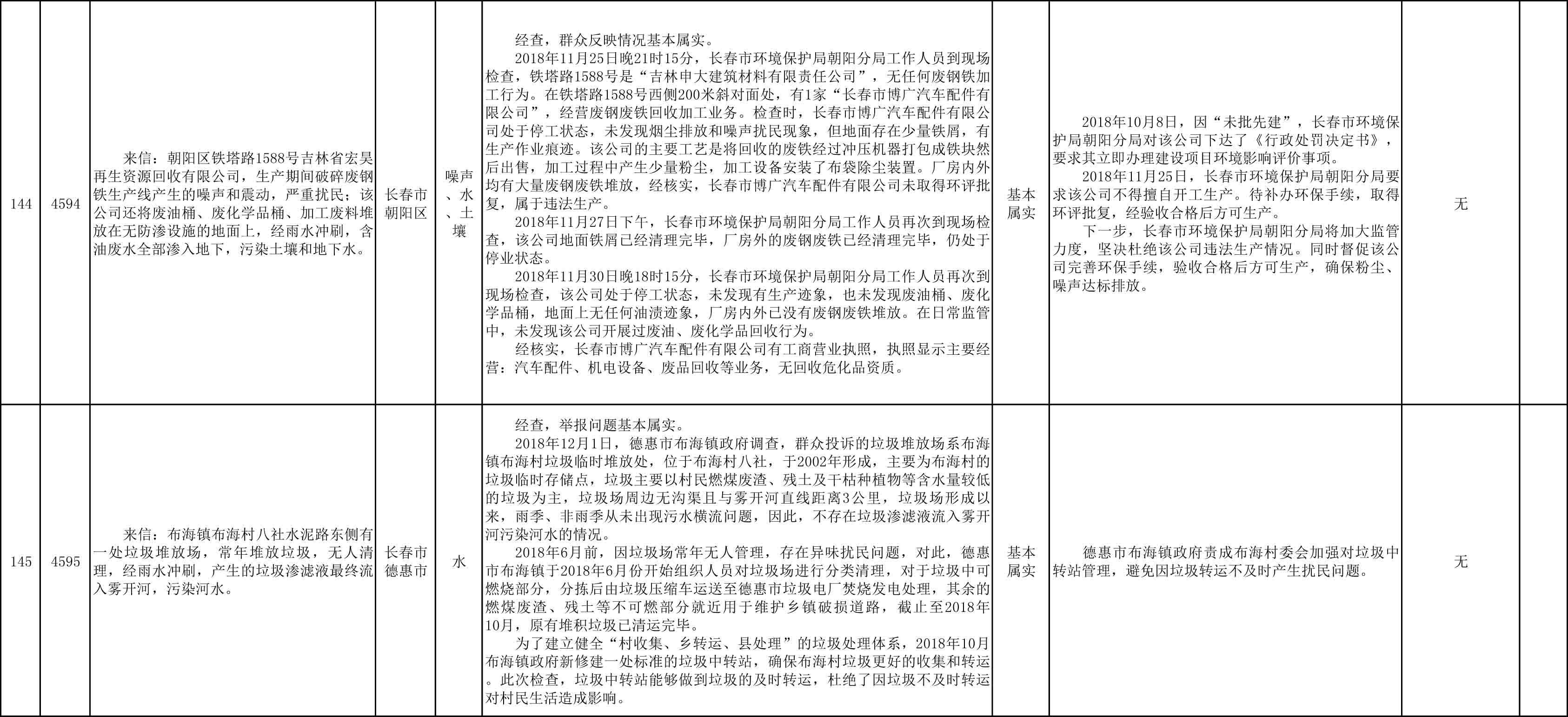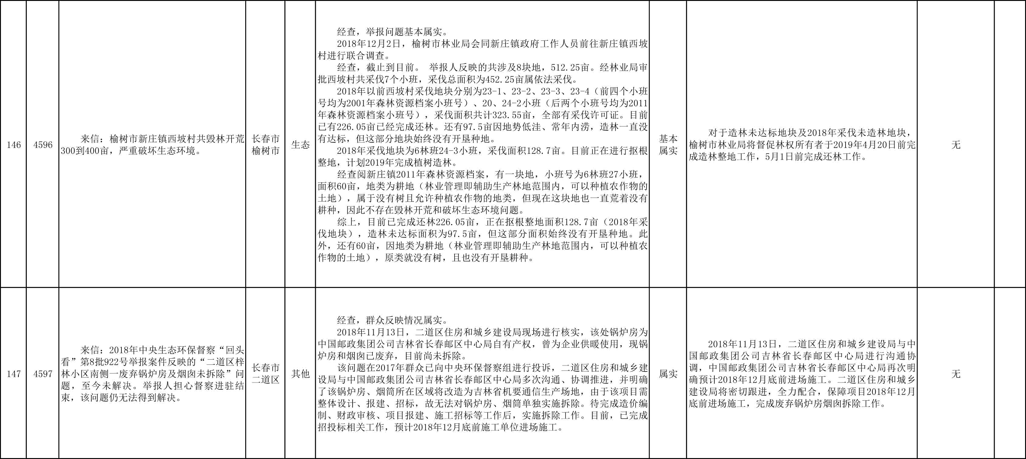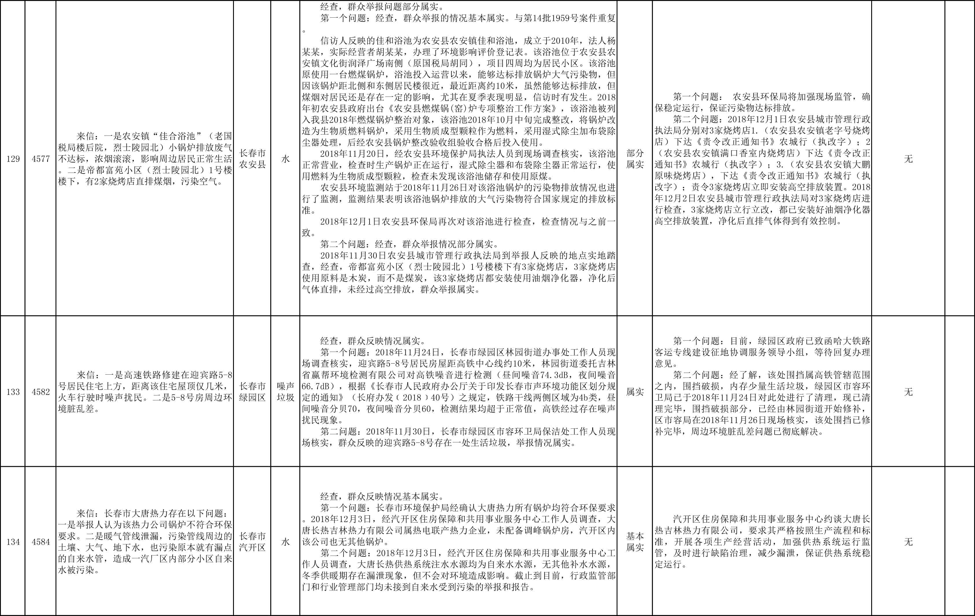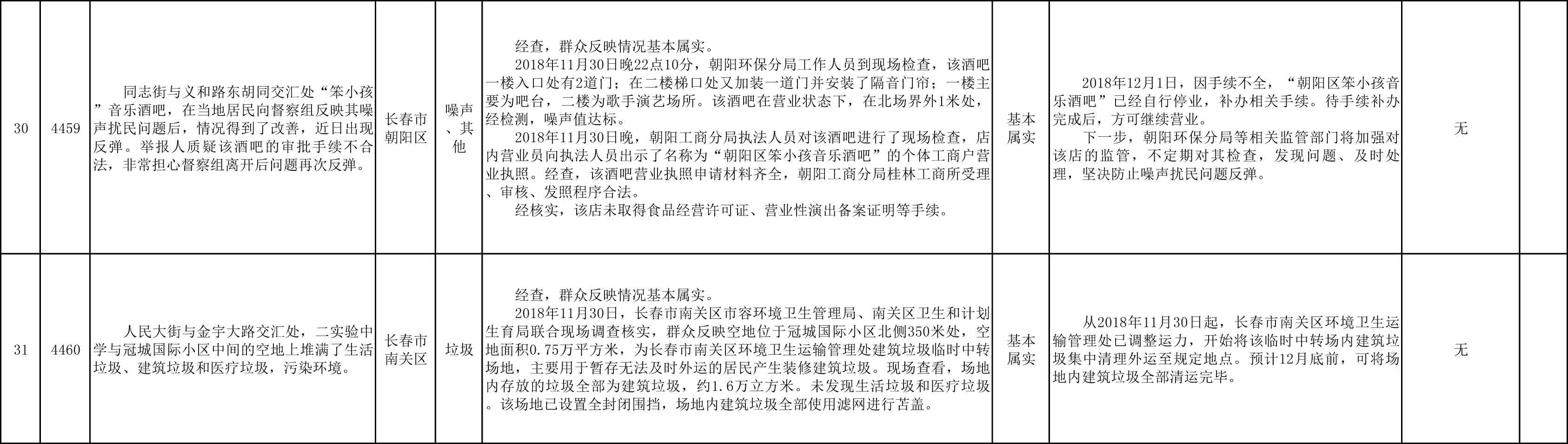 长春市群众信访举报转办和边督边改公开情况一览表(第25批 2018年12月9日)