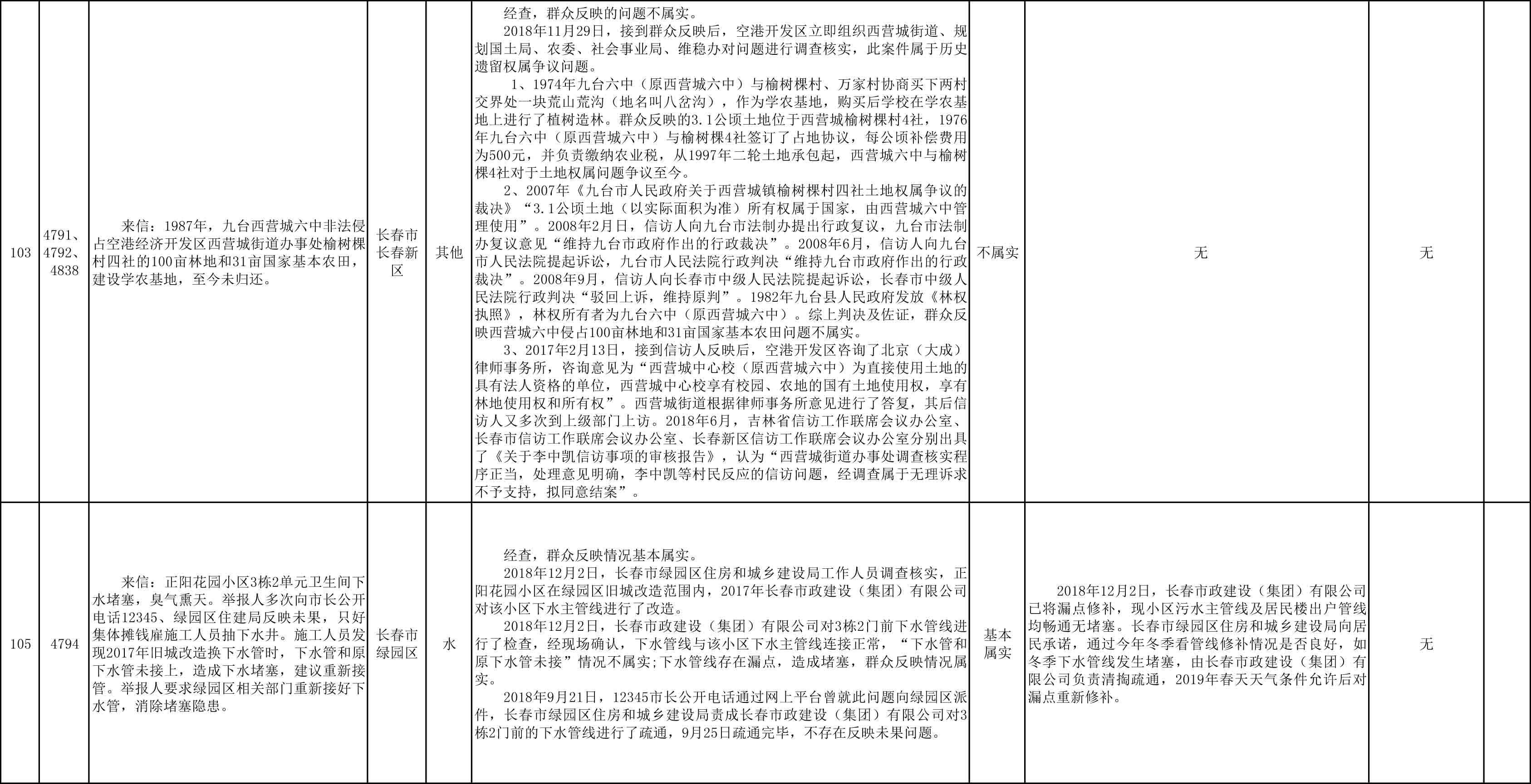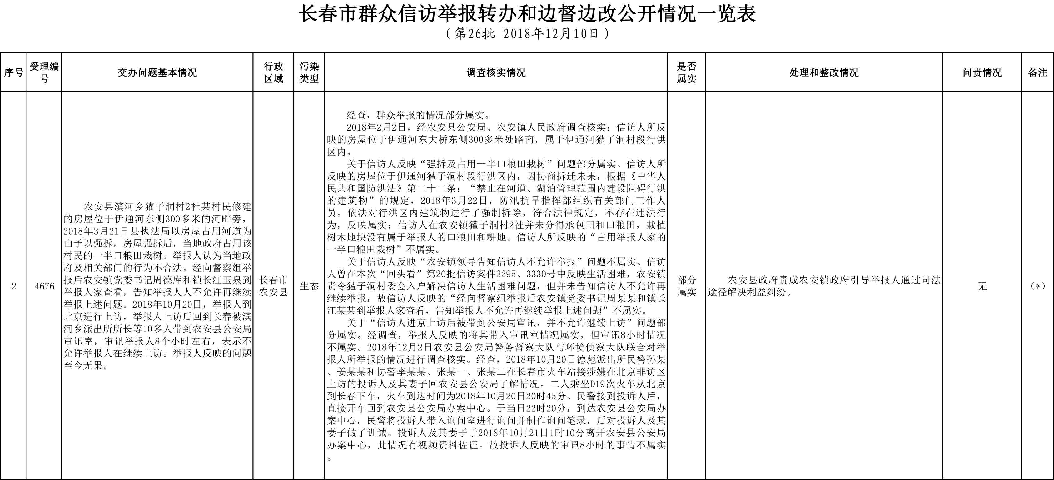 长春市群众信访举报转办和边督边改公开情况一览表(第26批 2018年12月10日)