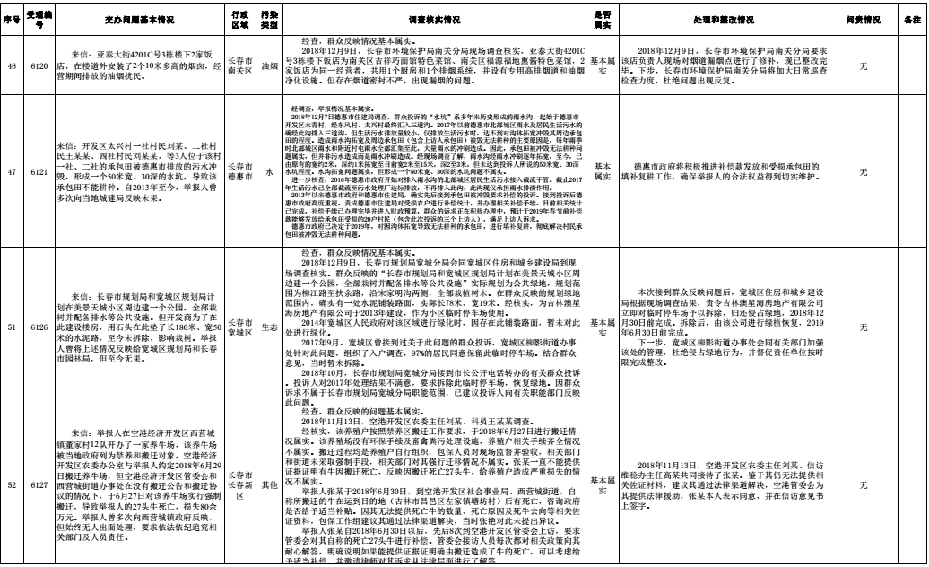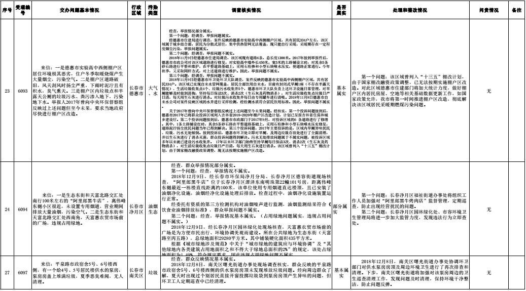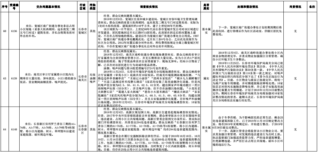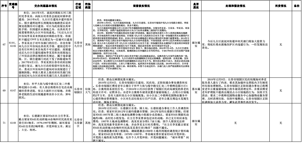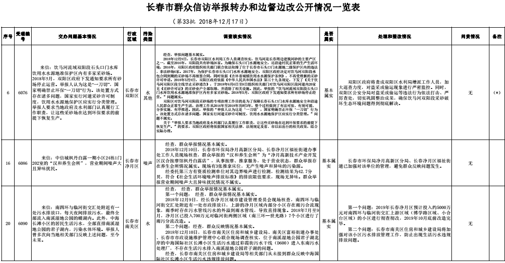 长春市群众信访举报转办和边督边改公开情况一览表(第33批 2018年12月17日)