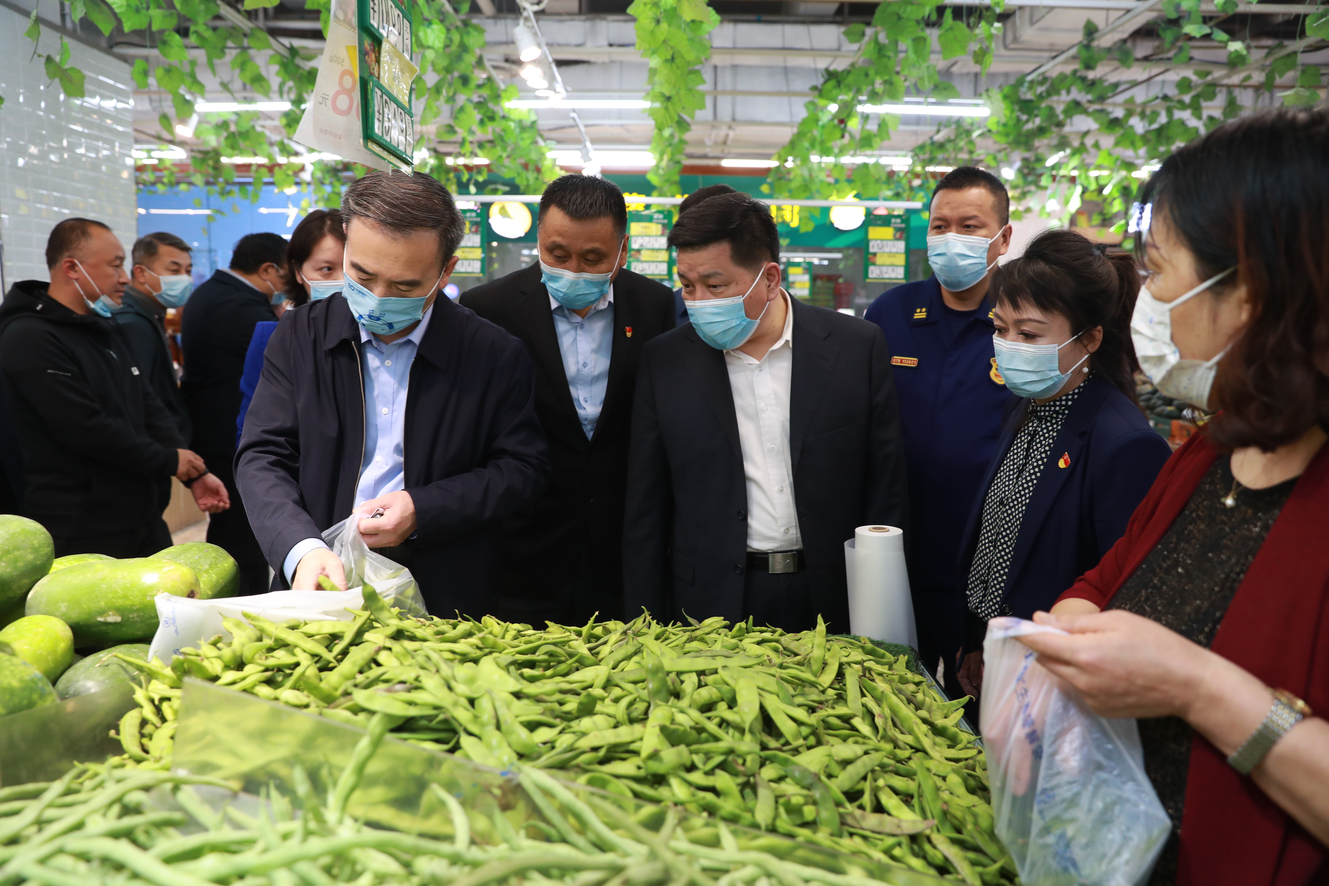 “菜篮子”保供稳价是民生大事。国庆节前,陈铁志书记先后走进亚泰超市吉林大路店和欧亚超市东盛店,实地调研了粮油、肉类、蔬菜等生活必需品供应情况。陈铁志书记边走边看、边听边问,在蔬菜、水果、肉品等摊位,与超市工作人员和购物群众亲切交流,详细询问商品价格、货源采购、合格检验等情况,并就假期超市生活必需品供应、“菜篮子”商品储备投放和假期供电等事宜提出了明确要求。