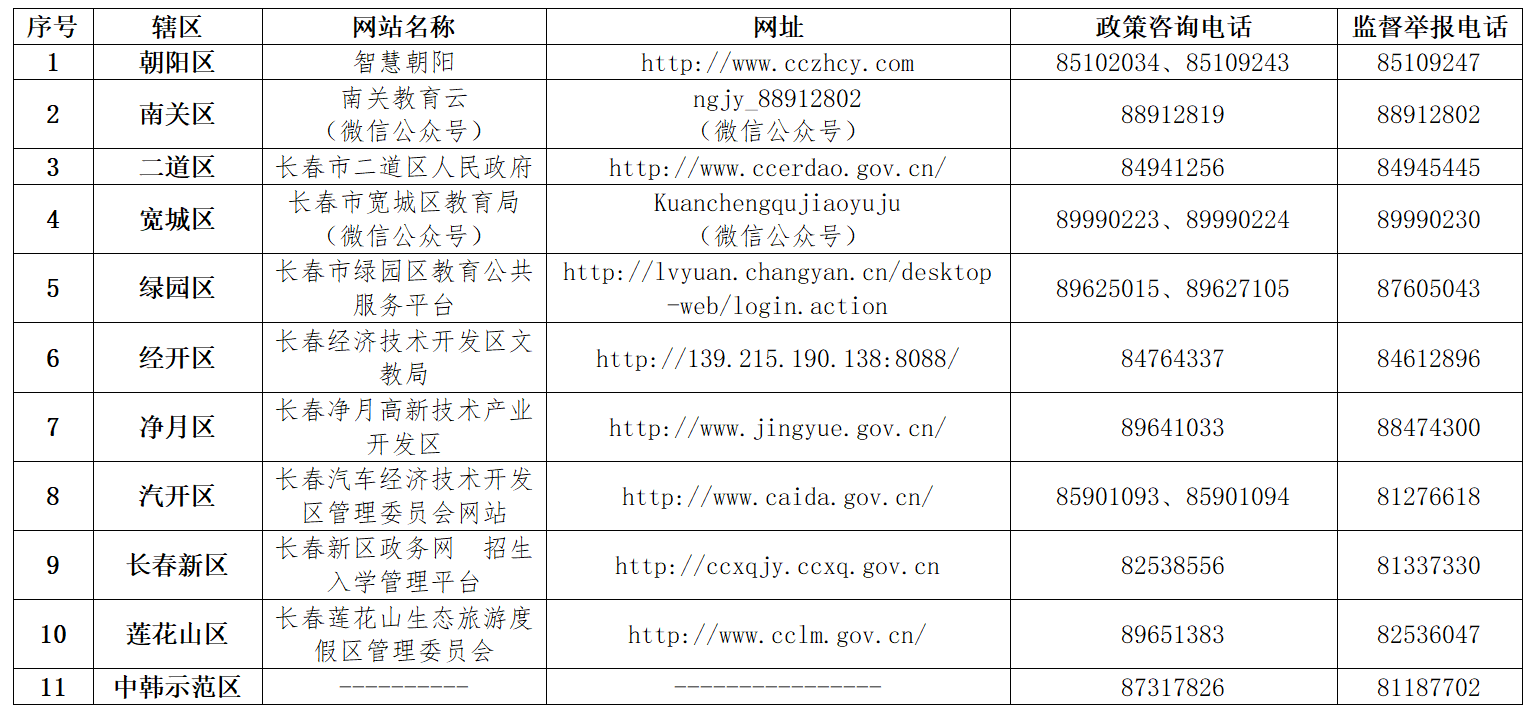 九、各城区、开发区教育行政部门官方网站和招生政策咨询电话